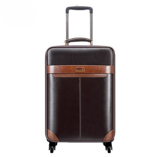 Мужской чемодан Geminu 22 дюйма — бизнес-чемодан премиум-класса из искусственной кожи, с 8 колесами и коричневым замком TSA