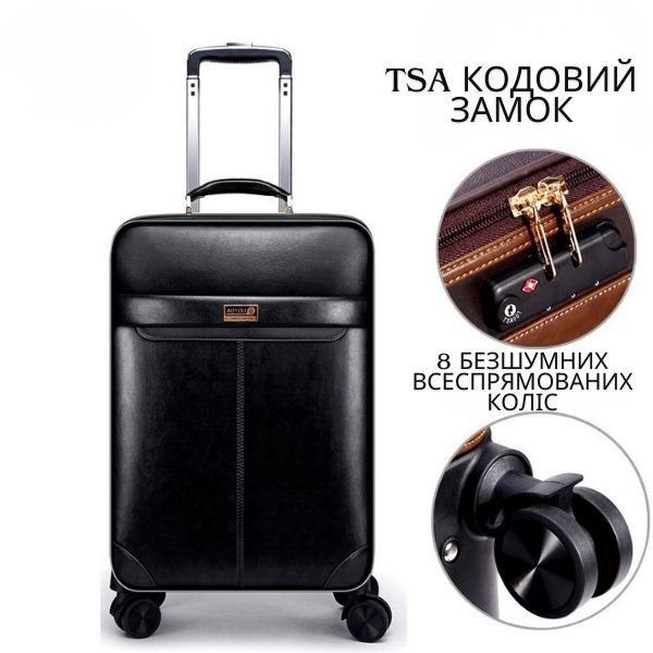 Мужской чемодан Geminu 22 дюйма — деловой чемодан из искусственной кожи премиум-класса с 8 колесами и замком TSA, черный