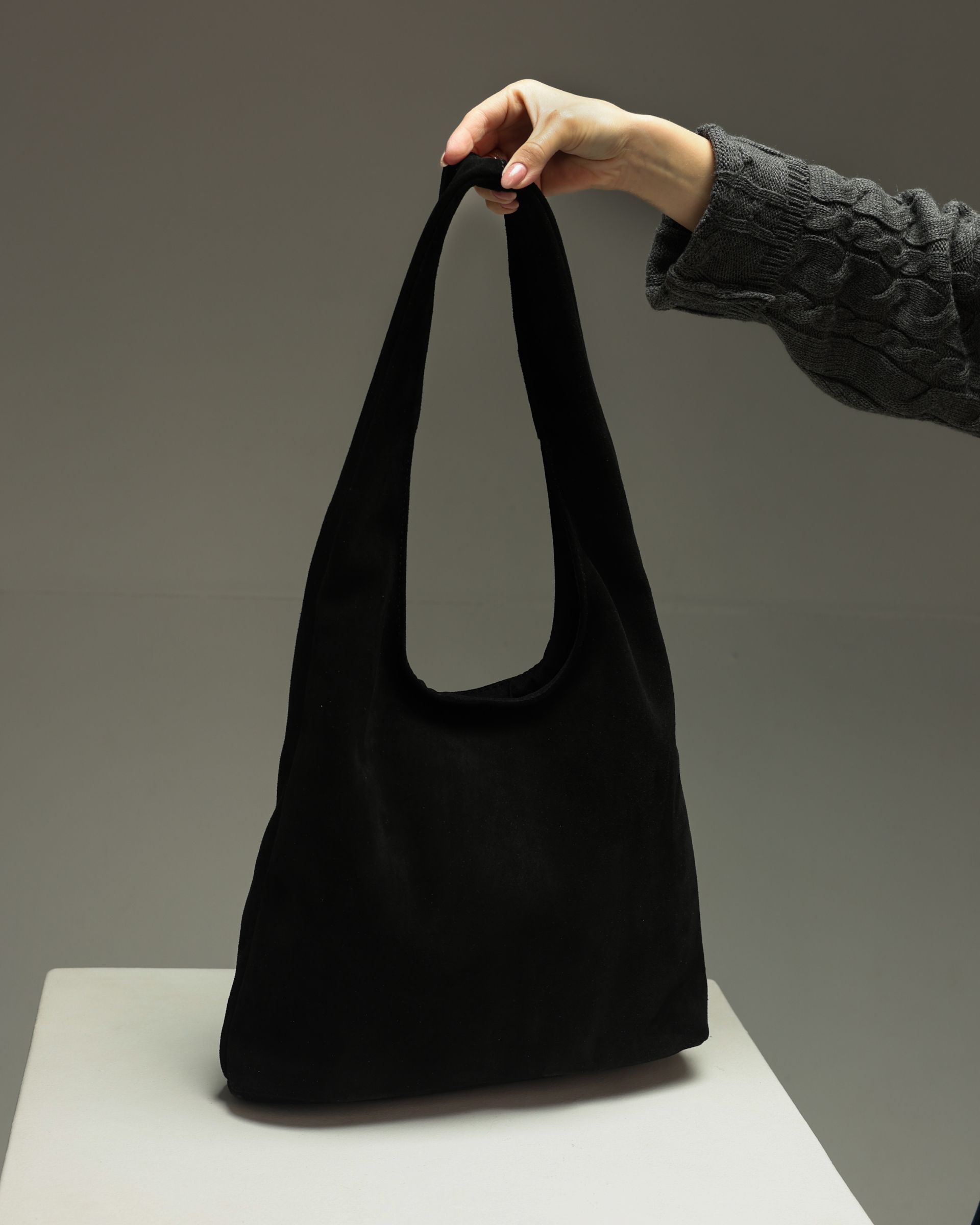 Жіноча сумка-шопер з натуральної замші, чорна, SW160-1