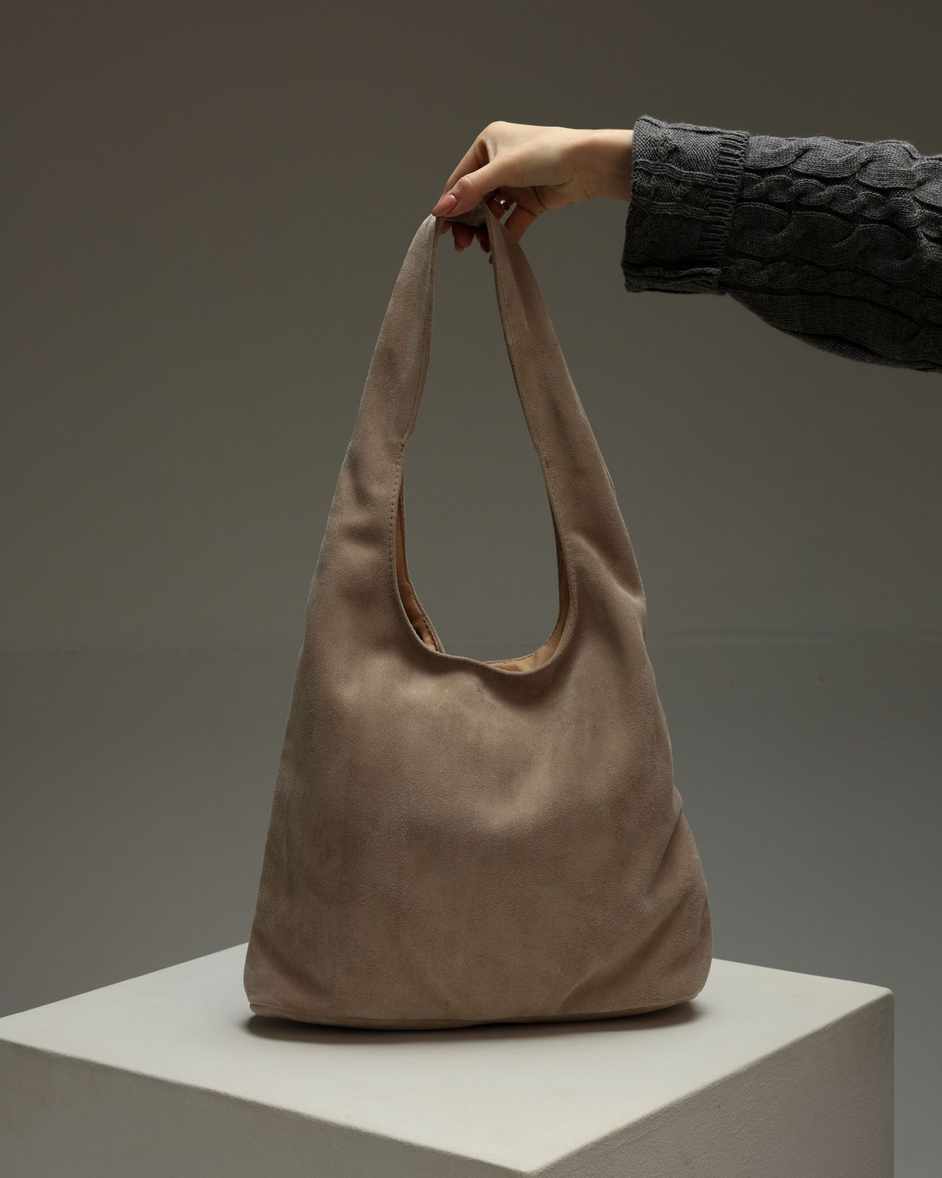 Жіноча сумка-шопер з натуральної замші бежевий, SW160-3