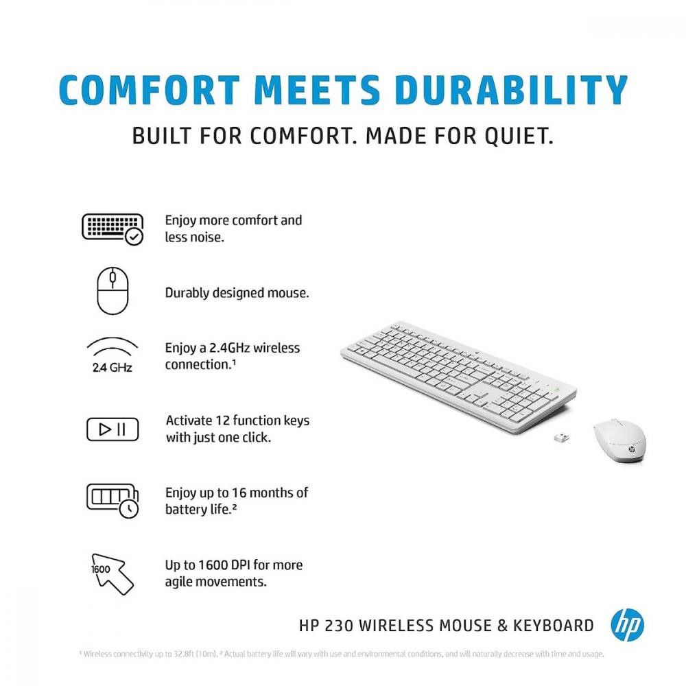 HP 230 WL — это практичный беспроводной комплект из клавиатуры и мыши, созданный для комфортной повседневной работы дома или в офисе. Минималистичный дизайн, тихий ход клавиш и надежное беспроводное соединение делают этот набор отличным выбором для пользователей, ценящих удобство, стабильность и аккуратное рабочее пространство без лишних проводов.