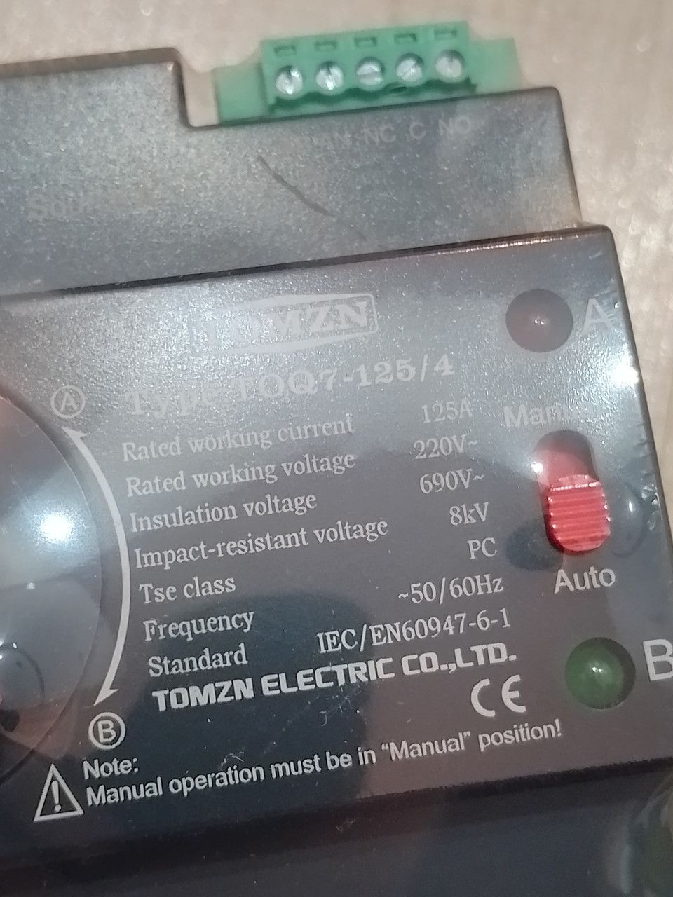 Автоматический переключатель напряжения на 3 фазы 125А Tomzn. Лицензионный Китай.