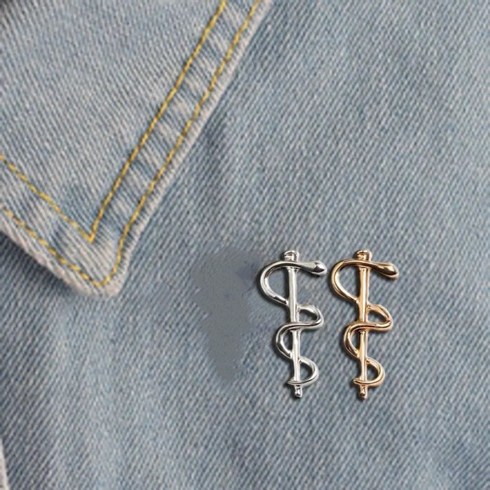 Брошь Кадуцей змея на палке в виде змеи значок врачей ВОЗ
