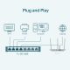 - Этот коммутатор готов к работе сразу после подключения. Автоматическое согласование на портах обеспечивает оптимальную скорость и совместимость с подключёнными устройствами без участия технических специалистов.
