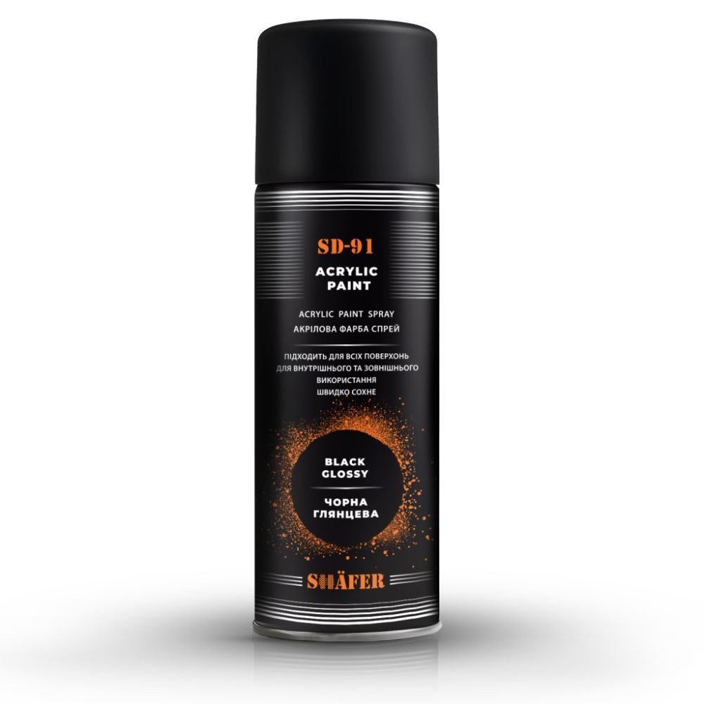 Черная глянцевая акриловая краска в аэрозоле (400 мл), SHAFER (SD91)