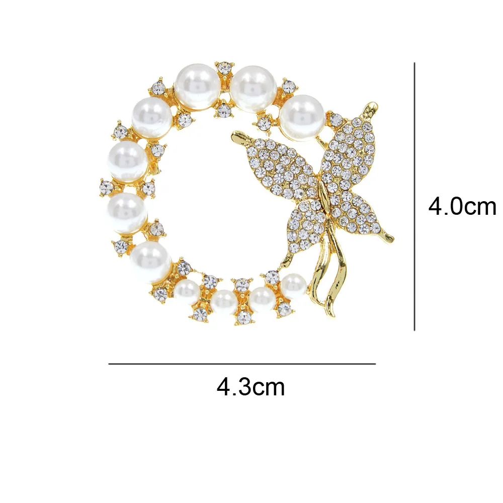 Брошь бабочка с жемчужинами жемчуг булавка с кристаллами