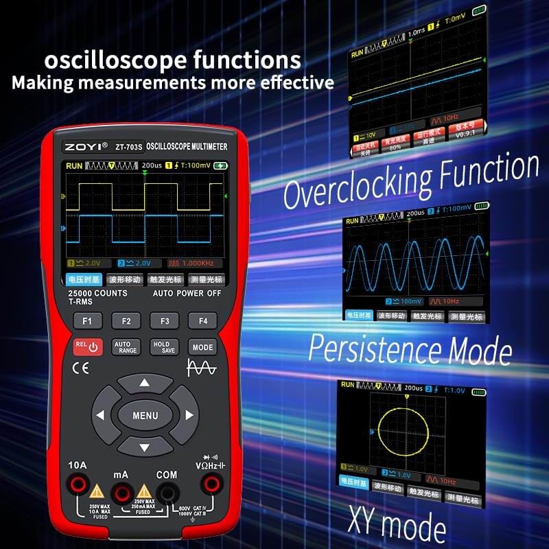 ZOYI ZT-703S Осциллограф 2*50 МГц Мультиметр Генератор сигналов Большой экран 3,5 дюйма