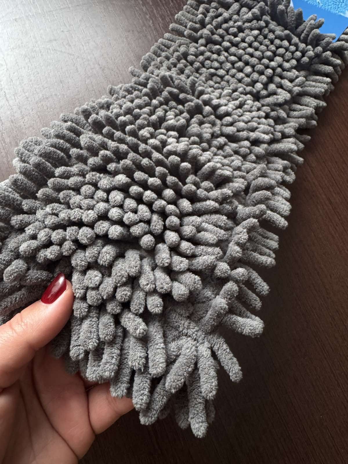 Запасная лапша из микрофибры для тряпки для швабры. С нижней стороны имеется подкладка, которая делает эту насадку более прочной и долговечной.