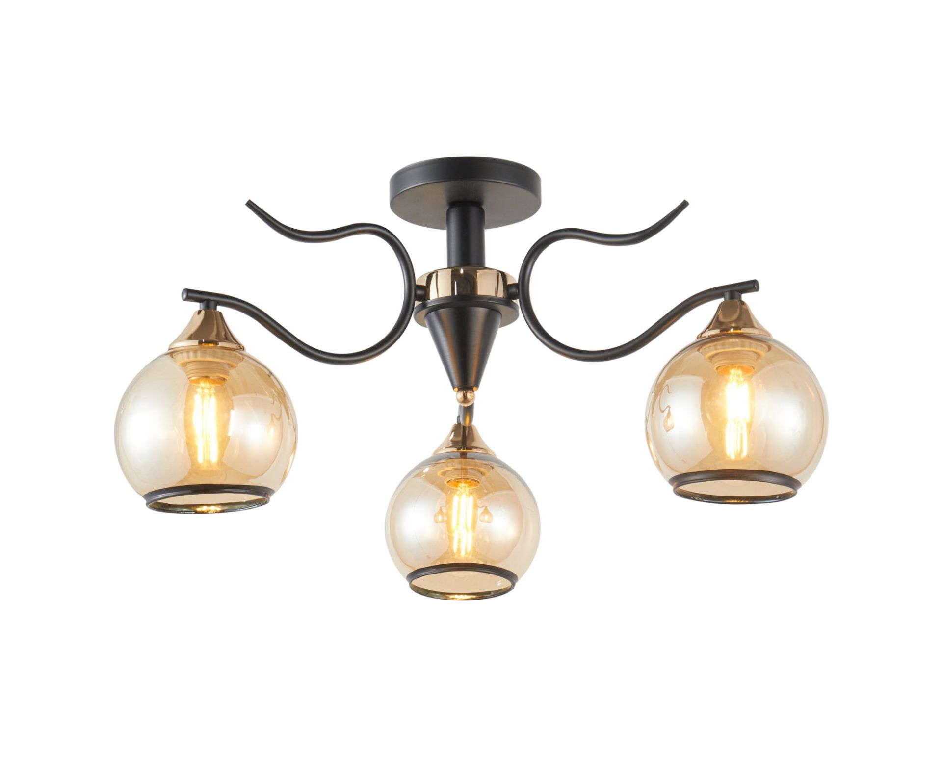 Декоративная люстра IS 6409-3 BK+FG — элегантный потолочный светильник с мягким теплым акцентом, который сочетает современный дизайн и изящную декоративность. Модель оснащена тремя плафонами под стандартный цоколь E27, что позволяет легко подобрать лампы требуемой мощности и световой температуры.