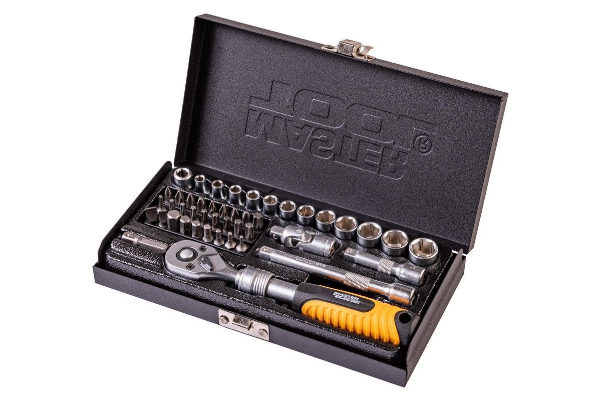 Набор инструментов PROFI ¼" 45 шт 4-13 мм телескопическая трещотка CrV50BV30 металлический кейс MASTERTOOL 78-2045
