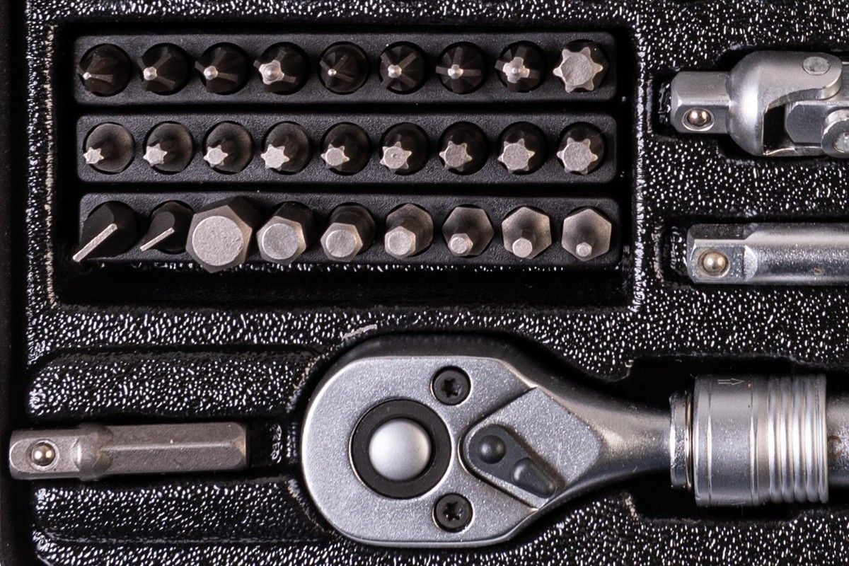 Особенностью набора является телескопическая трещотка, которая позволяет увеличивать рычаг, облегчая работу в ограниченных пространствах и обеспечивая более эффективное усилие. Надежный металлический кейс обеспечивает защиту инструментов, удобную транспортировку и аккуратное хранение.