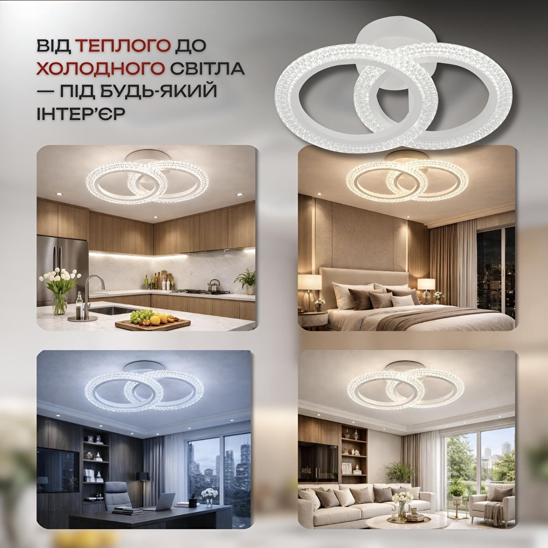 Светодиодная люстра INTEREES IS C9081-2 WH – это стильное решение для современного интерьера, в котором сочетается эстетика минимализма и передовые технологии освещения. Модель выполнена в белом цвете, что придает пространству глубины, элегантности и выразительного контраста. Ее дизайн базируется на двух источниках света круглой формы, гармонично сочетающихся в единую композицию, создавая визуальный баланс и современную динамику.