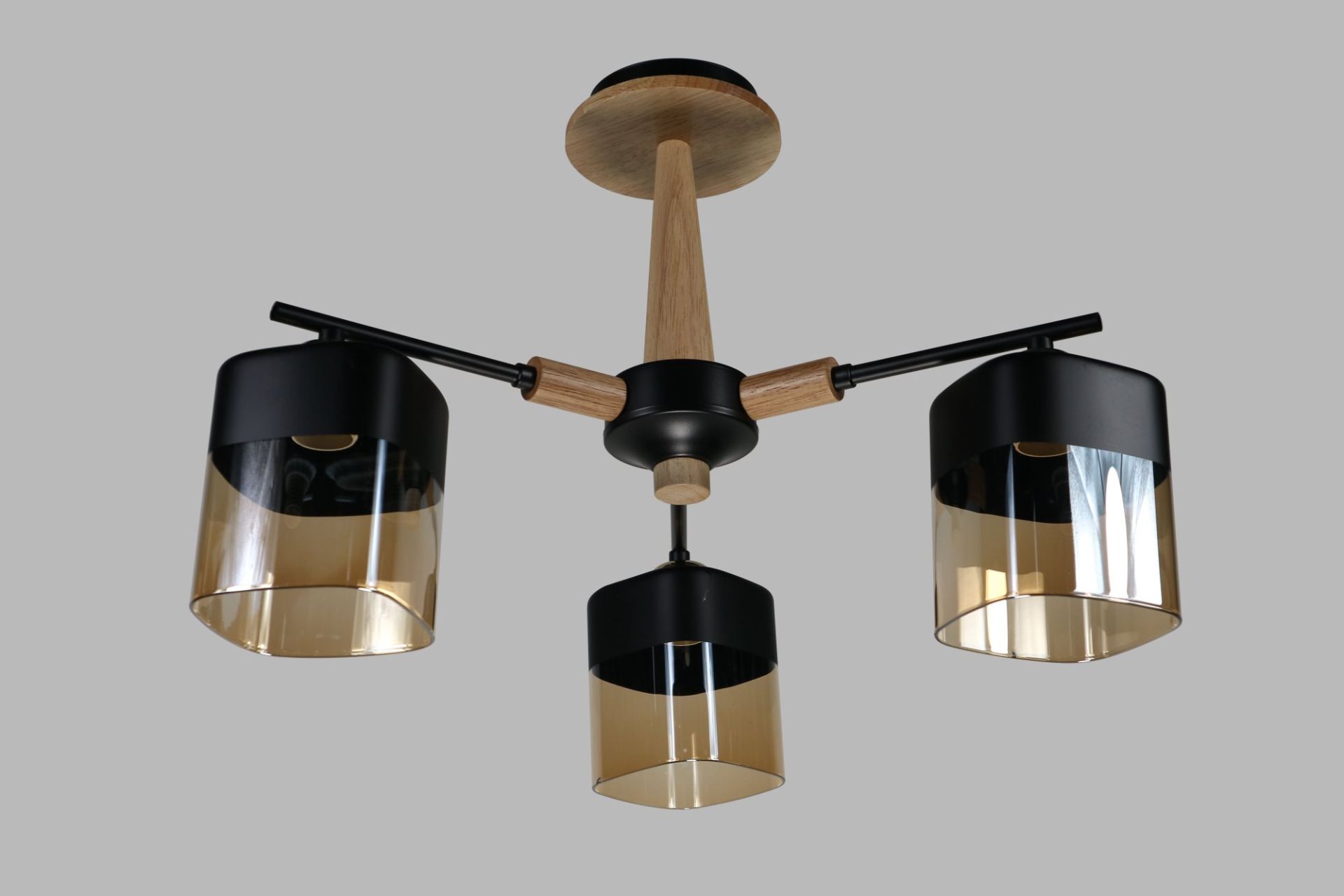 Декоративная люстра IS 96466/3 BK — современная модель с выразительным дизайном, в которой сочетаются геометрические формы, теплые оттенки стекла и натуральные декоративные акценты. Светильник оснащен тремя плафонами под стандартный цоколь E27, что обеспечивает равномерное и комфортное освещение помещения.