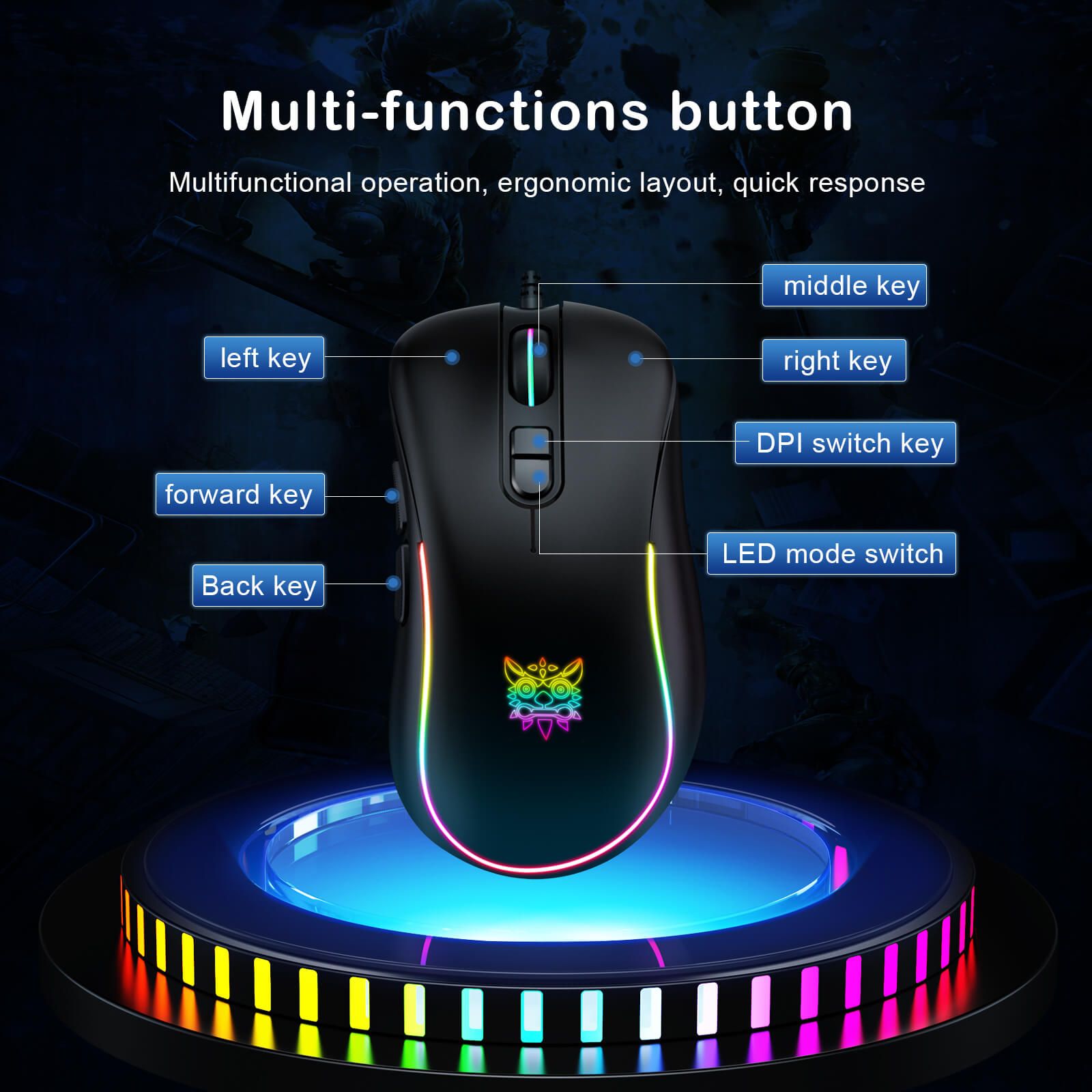 ONIKUMA CW907 — это высокоточная игровая мышь, разработанная для настоящих геймеров. Благодаря оптическому сенсору INST-725F с регулируемым разрешением до 7200 DPI, 7 программируемым кнопкам и эффектной RGB-подсветке, она идеально подойдёт как для динамичных шутеров, так и для стратегий. Эргономичный корпус и лёгкий вес обеспечивают комфорт даже при многочасовой игре.
