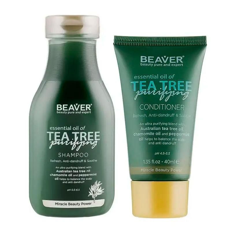 Набор для жирных волос Beaver Essential Oil of Tea Tree Purifying шампунь и кондиционер, 2х730 мл 60 мл + 40 мл