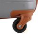 - Полноповоротные колеса - данная модель оснащена четырьмя спаренными колесами, вращающимися на 360°. Облегченные cпаренные колеса со спицами обеспечивают лучшее распределение веса и устойчивость чемодана, отличное сцепление, маневренность и большую износостойкость. Колеса крепятся на 4 винта изнутри, что обеспечивает высокую стойкость при ударной нагрузке с любой стороны, и позволяет их заменить при износе.