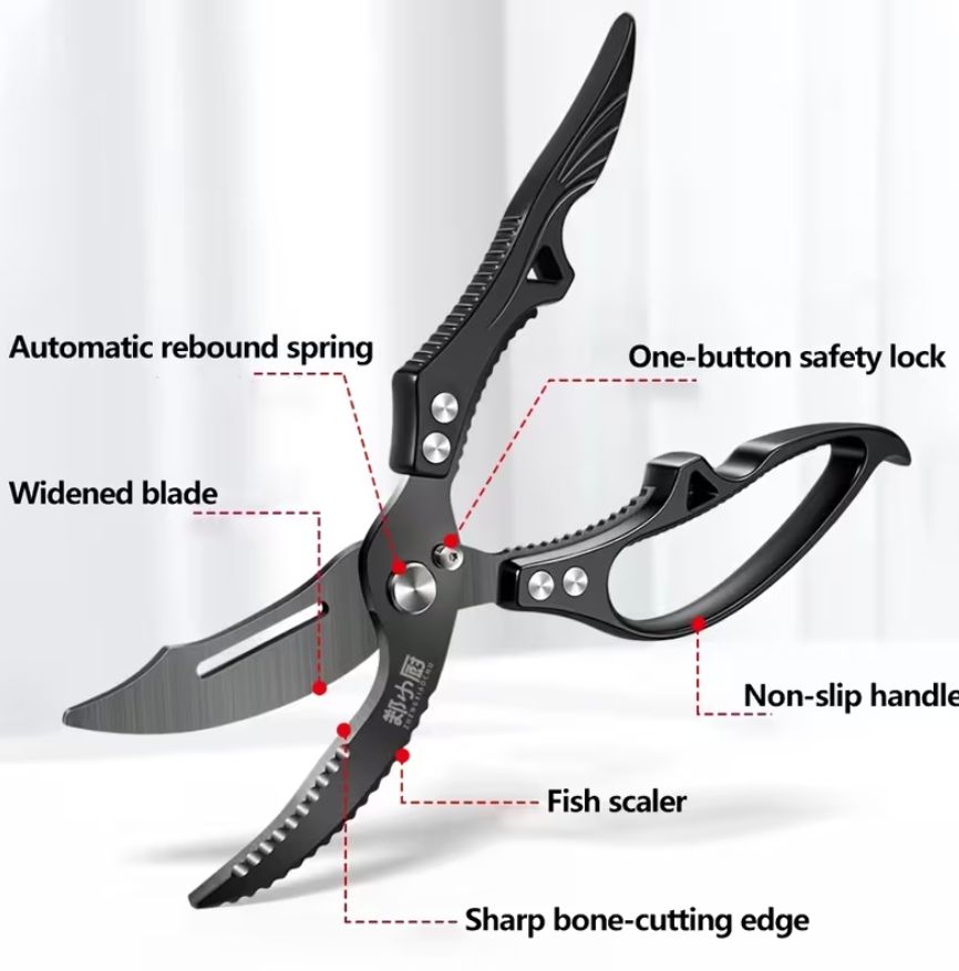 Сверхпрочные кухонные ножницы из нержавеющей стали - Многофункциональные ножницы для птицы и барбекю с эргономичными ручками, острые лезвия для курицы, мяса и многого другого - Идеально подходят для дома, ресторана и использования на открытом воздухе, безопасный для пищевых продуктов дизайн, кухонные ножницы, ресторанное оборудование