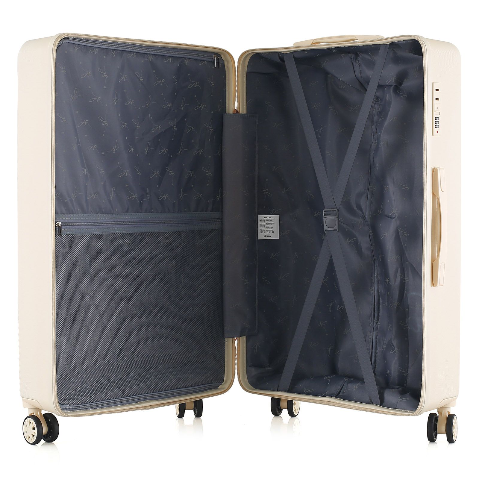 - Чемодан имеет текстильную перегородку на молнии, которая разделяет внутреннее пространство на два основных отделения. перегородка оснащена карманом на молнии для мелких вещей и документов.