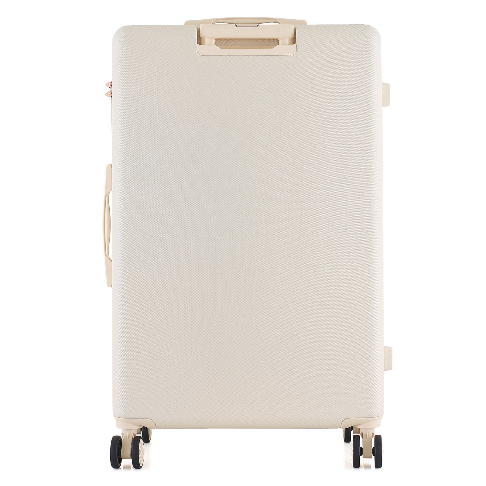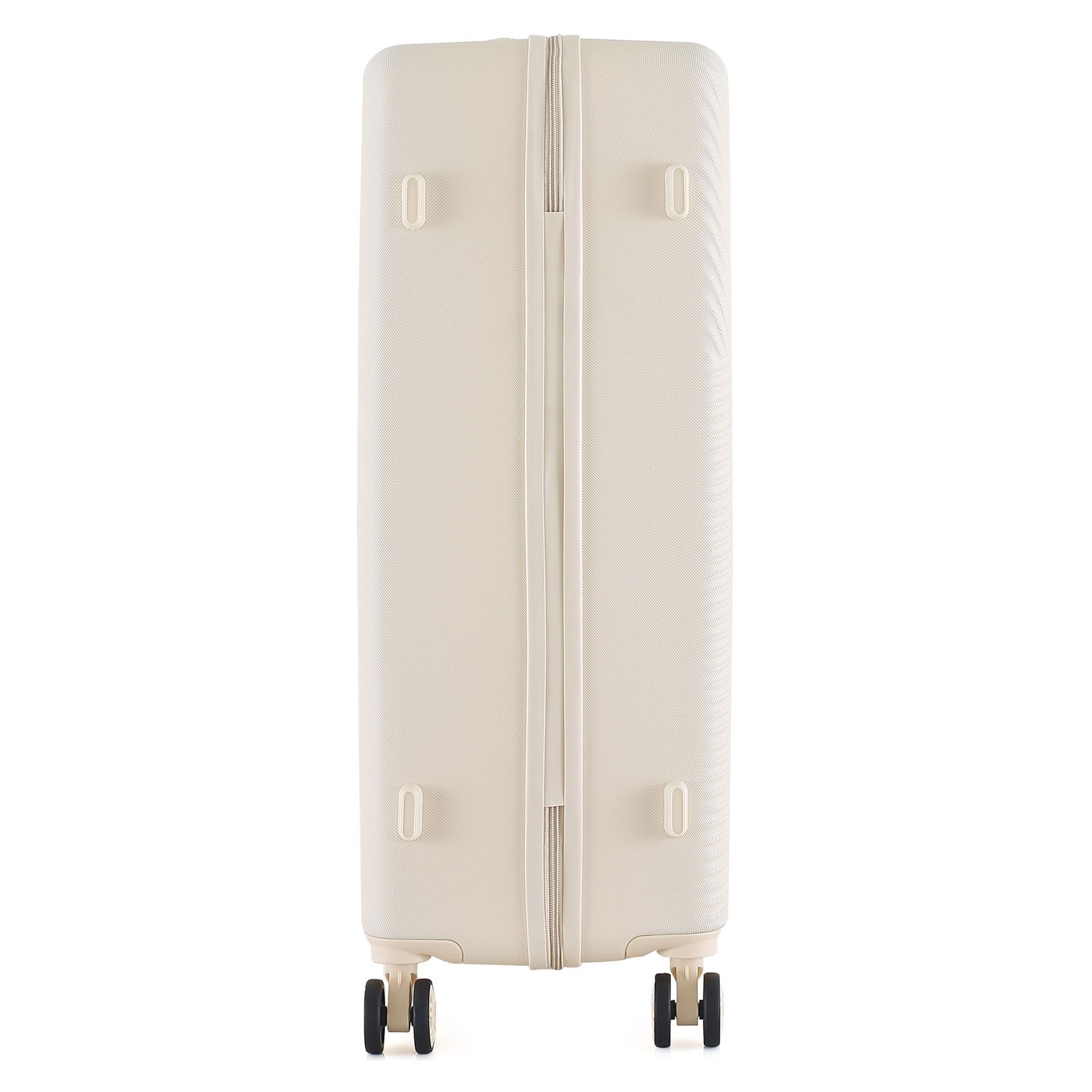 - Полноповоротные колеса - данная модель оснащена четырьмя спаренными колесами большого диаметра, вращающимися на 360°. Спаренные колеса обеспечивают лучшее распределение веса и устойчивость чемодана, отличное сцепление, маневренность и большую износостойкость. Колеса крепятся на 4 винта изнутри, что обеспечивает высокую стойкость при ударной нагрузке с любой стороны, и позволяет их заменить при износе.