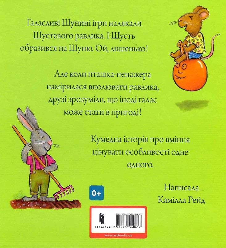Веселых друзей Шустю и Шуню придумал и нарисовал гениальный Аксель Шеффер, один из лучших детских иллюстраторов, «отец» знаменитого Груффало. Серия «Шуст и Шуня» посвящена важным проблемам, с которыми сталкиваются все дети младшего дошкольного возраста. Шумные игры Шуны напугали улитку Шустевого. И Шуст обиделся на Шуна. О, вот и все! Но когда прожорливая птица решила выследить улитку, друзья поняли, что иногда шум может быть полезен! Эта яркая и красочная книга сразу привлечет внимание малыша, и он не захочет ее выпускать из рук. А главные герои этого сериала станут лучшими книжными друзьями вашего ребенка.