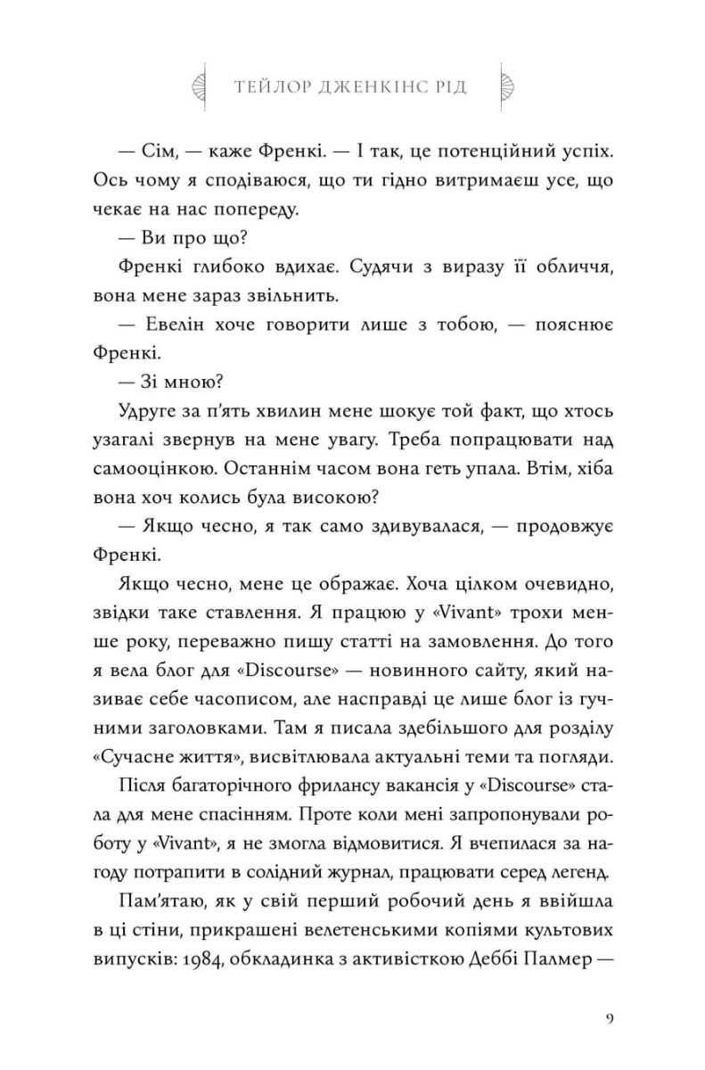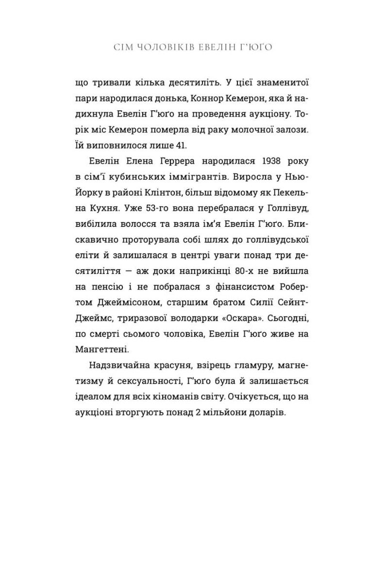 Но за роскошью, любовью и гламуром скрывается боль, жертвы и тайны, о которых никто не знал. И когда история подходит к концу, Моник понимает, что история Эвелин переплетается с ее собственной — трагически и неизбежно.