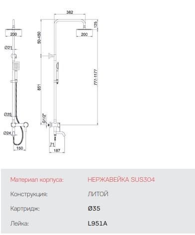 Трех режимный керамический картридж (тропический душ, ручной душ, излив)Материал изготовления смесителя нержавеющая сталь 304.