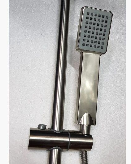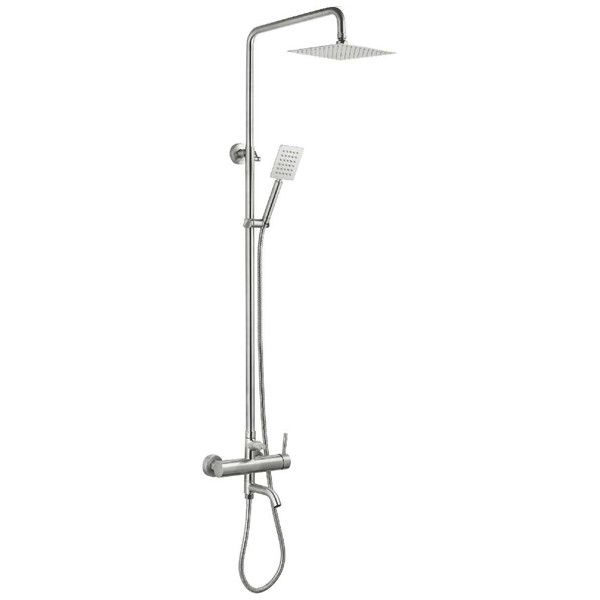 Душевая колонна выполнена из нержавеющей стали. Сантехническая система предназначена для регулирования и смешивания горячей и холодной воды, что позволяет пользоваться одним потоком комфортной температуры. Предназначена система для душа и представляет собой излив, стойка и лейка.