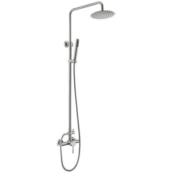 Душевая колонна со смесителем выполнена из нержавеющей стали. Система предназначена для душа и состоит из излива, стойки и лейки.
