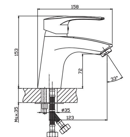 - Смеситель для умывальника с керамическим картриджем 40 mm.