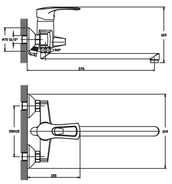 - Смеситель для ванны с длинным изливом