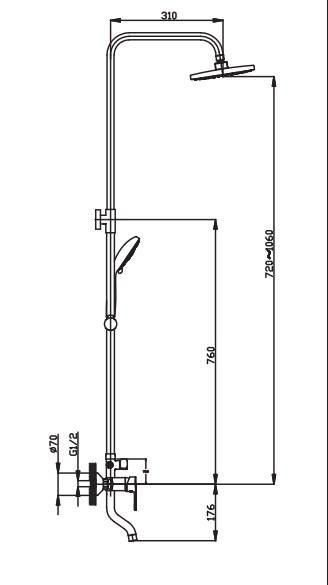 Душевая колонна с одноручковым смесителем и душевой лейкой