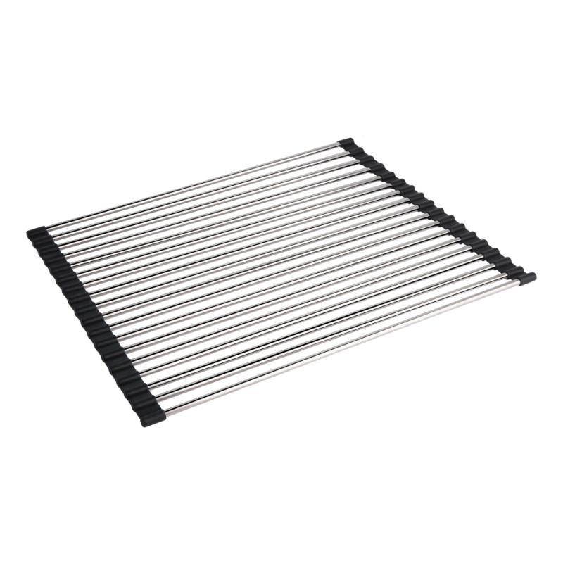 Сушилка для посуды Lidz (CRM) 112 20 000 00 устанавливается на мойку. Она позволяет хранить посуду сухой и всегда под рукой. Изделие выполнено в виде решетки с 17 стержнями с хромированным покрытием, что предотвращает образование коррозии, и черными панелями по бокам для их крепления.