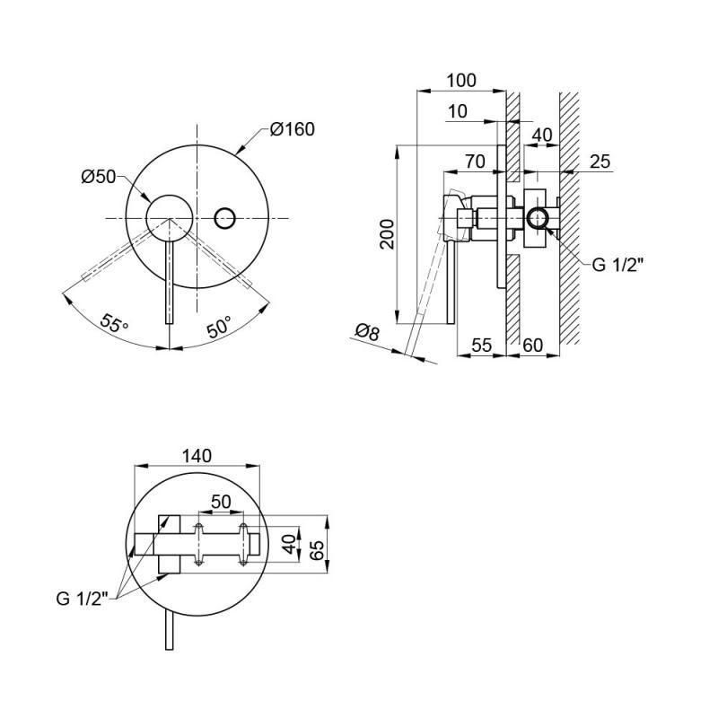 КомплектацияСмеситель скрытого монтажа, крепежи.