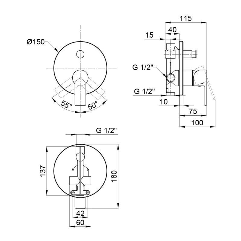 КомплектацияСмеситель скрытого монтажа, крепежи.