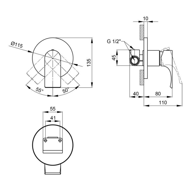 КомплектацияСмеситель скрытого монтажа, крепежи.