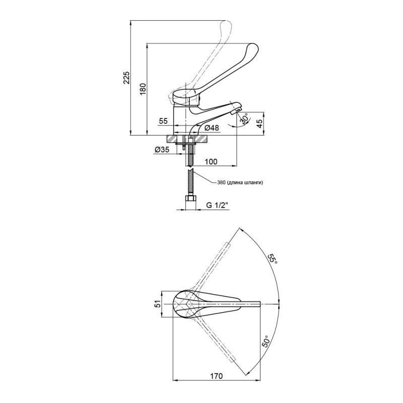 Смеситель для раковины Qtap Lek локтевой QTLEK1541107C Chrome