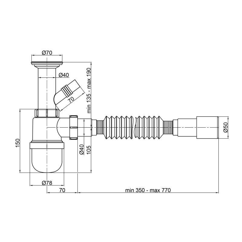 Дополнительные характеристикиДлина гофрированной трубы: 350 - 770 мм.