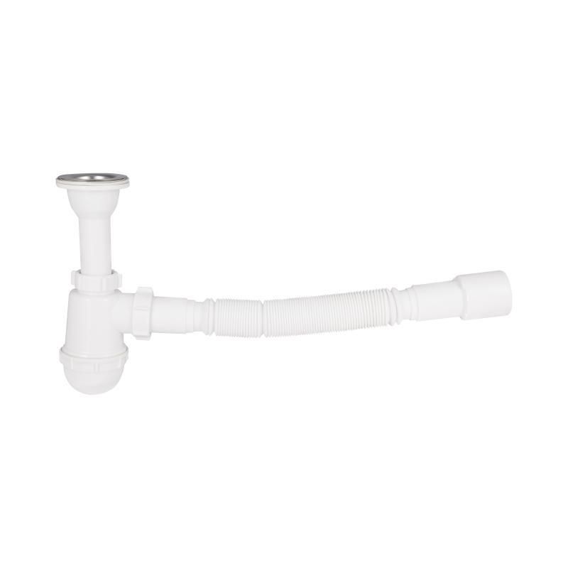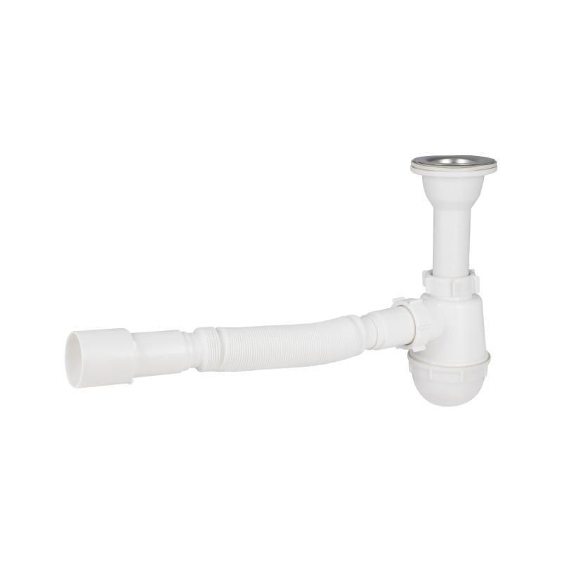 Сифон для раковины Lidz (WHI) 60 06 Y001 01 имеет вид колбы изготовлен из пластика белого цвета. Изделие обладает гладкой внутренней поверхностью, что препятствует накоплению грязи на стенках. Резервуар колбы легко снимается, поэтому его очистка от осевших твердых частиц не составит больших хлопот. Гофрированный выход дает возможность изменять длину и угол трубы.