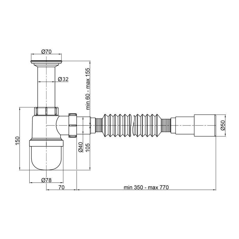 Дополнительные характеристикиДлина гофрированной трубы: 350 - 770 мм.