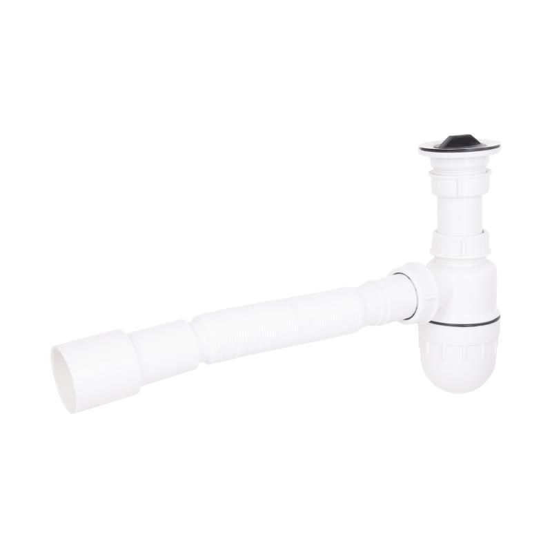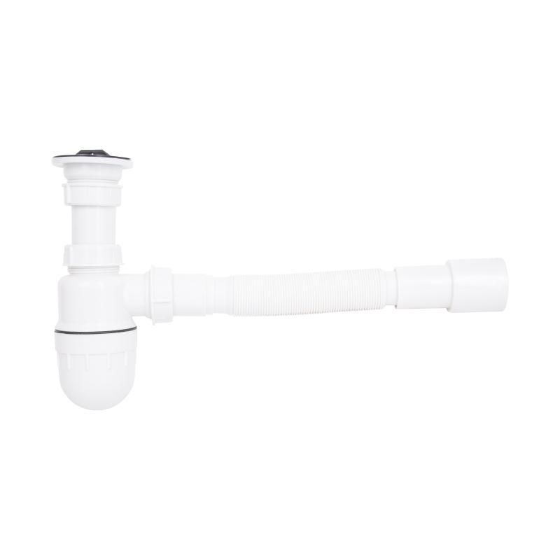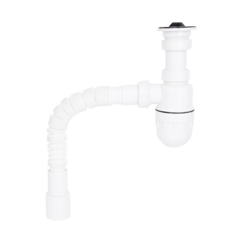 Сифон для раковины Lidz (WHI) 60 06 Y001 00 имеет вид колбы изготовлен из пластика белого цвета. Изделие обладает гладкой внутренней поверхностью, что препятствует накоплению грязи на стенках. Резервуар колбы легко снимается, поэтому его очистка от осевших твердых частиц не составит больших хлопот. Гофрированный выход дает возможность изменять длину и угол трубы.
