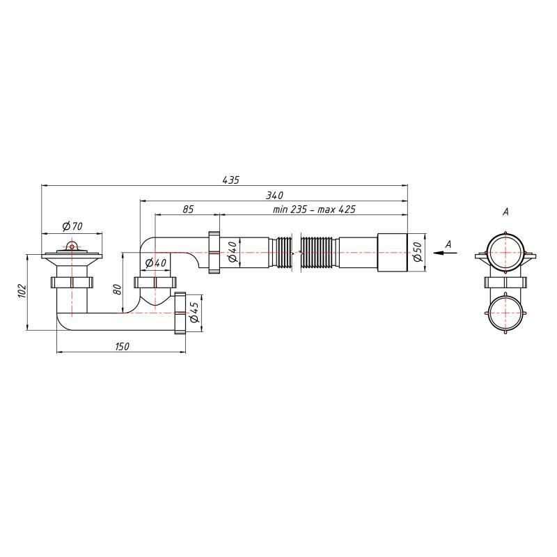Дополнительные характеристикиДлина гофрированной трубы: 235 - 425 мм.