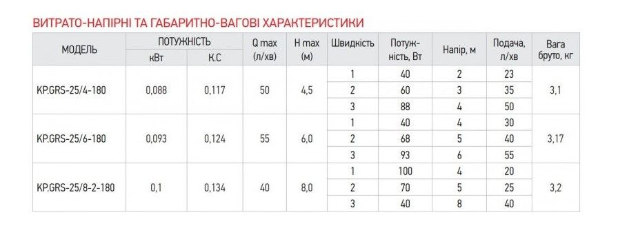 KOER KP.GRS-25/4-180 Насос циркуляционный (с гайками, кабелем и вилкой) обмотка - медь