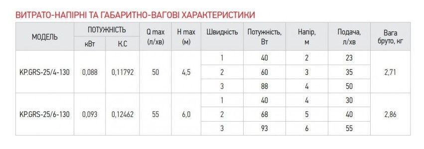 KOER KP.GRS-25/4-130 Насос циркуляционный (с кабелем и вилкой) обмотка - медь