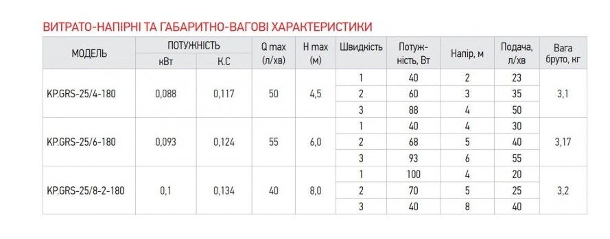 KOER KP.GRS-25/6-180 Насос циркуляционный (с гайками, кабелем и вилкой) обмотка - медь