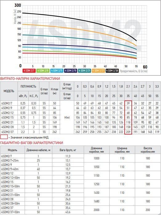 Максимальный напор (м)262