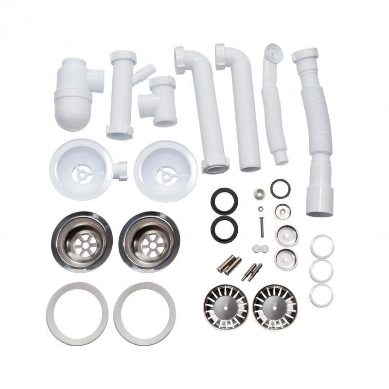 Сифон для двойной кухонной мойки Lidz (WHI) 60 08 E001 02 изготовлен из качественного пластика белого цвета. Изделие имеет 2 выпуска располагающихся на одной высоте что позволяет использовать сифон для мойки с 2-мя основными чашами. Резервуар сифона откручивается для очистки. Гофрированный выход дает возможность изменять длину и угол трубы. Благодаря коммуникации для перелива можно избежать переполнения кухонной раковины водой.