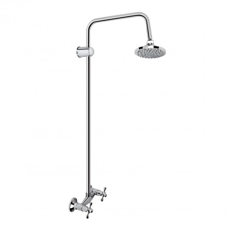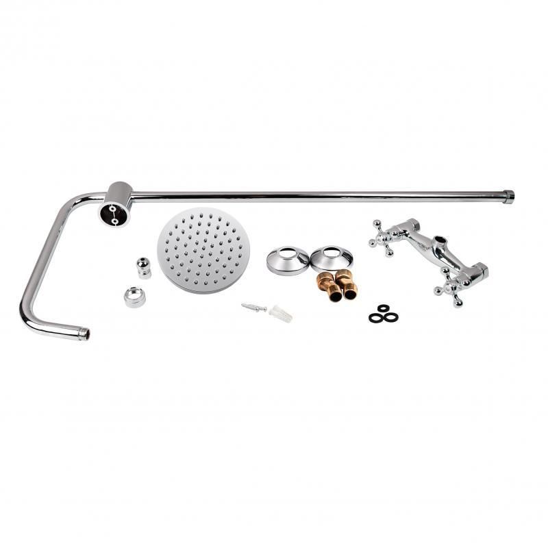 КомплектацияСмеситель, кронштейн для верхнего душа, лейка для верхнего душа, душевая стойка, крепежи.