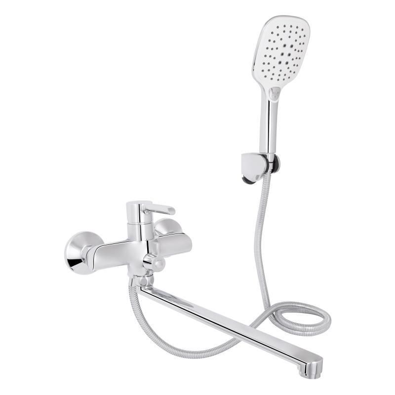 Смеситель для ванны Qtap Grand CRM 005 изготовлен из прочной и износостойкой латуни с равномерным хромированным покрытием, благодаря которому изделие имеет привлекательный внешний вид и более устойчиво к механическим повреждениям. В комплектацию входит лейка, держатель для душа и душевой шланг. Подача воды осуществляется при помощи удобного рычага, а переключение в душевой режим - дивертором.