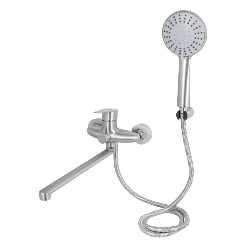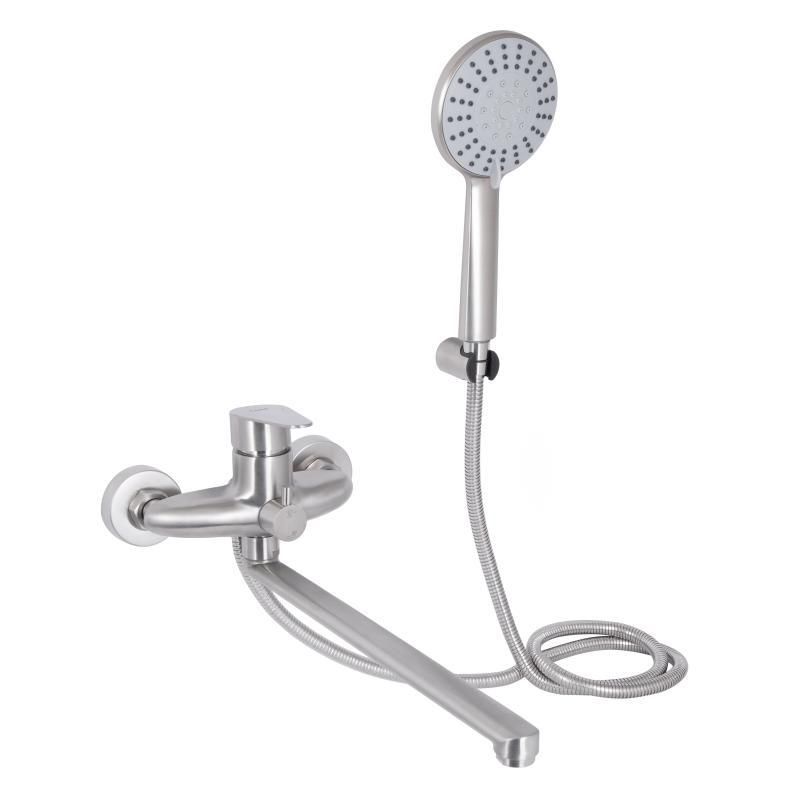 Смеситель для ванны Lidz (NKS) 09 35 005-1 выполнен из нержавеющей стали, что гарантирует длительный срок эксплуатации. Для включения подачи воды достаточно поднять рычаг и повернуть его в необходимую сторону. Смеситель монтируется на стену над ванной с помощью крепежных элементов, которые входят в комплект. Круглые розетки скроют погрешности установки на отделке. Держатель лейки крепится также на стену. Таким образом, ваши руки будут свободны во время душевых процедур.