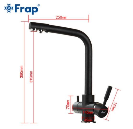 Смеситель для кухни Frap F4352-7 предназначен для подключения к фильтру питьевой воды. Смеситель обладает в конструкции дополнительным рычагом управления, который позволяет включать отфильтрованную воду отдельно от той, что поступает по водопроводу, питьевая вода и водопроводная не смешиваются друг с другом.